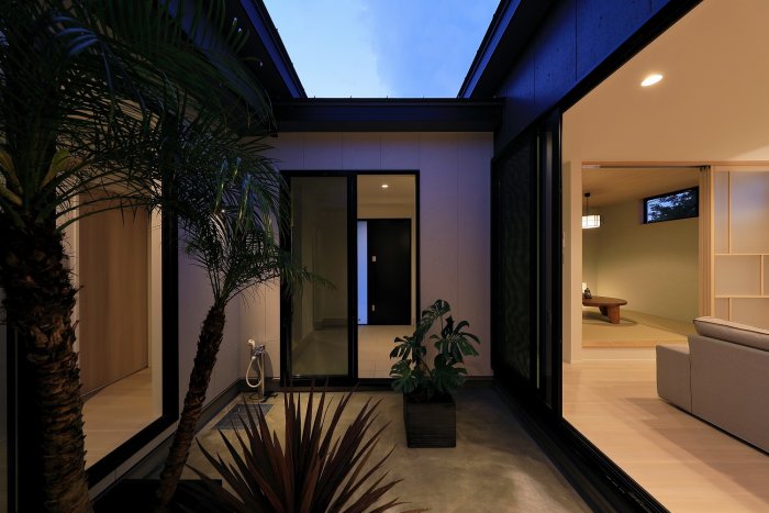家の中に光が差し込むロの字型のライトコート(光庭)
