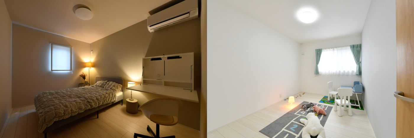 洋室2つと主寝室はそれぞれ6帖分の充分な個室スペースを確保し、主寝室には4帖の大きめなウォークインクローゼットを設けています。