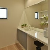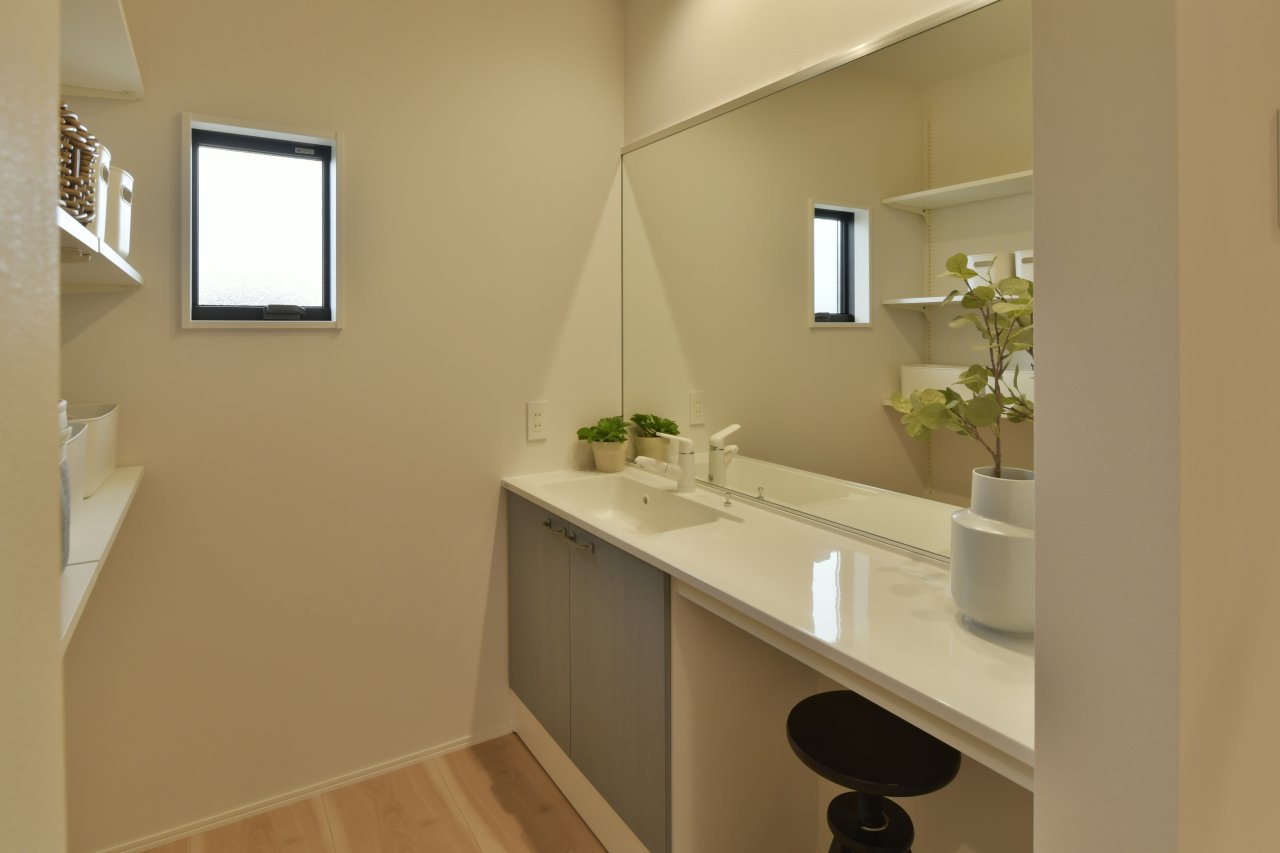 一般的に洗濯物は外に干すイメージですが、最近は洗濯物に花粉やウイルスが付着しないよう、室内干しを選ぶ方が増えました。そのため、ランドリールームの需要が高まり、また家族全員分の収納ができるファミリークローゼットも人気です。時代に合わせた流行りを早く取り入れられる吉原建設だからこその提案です。