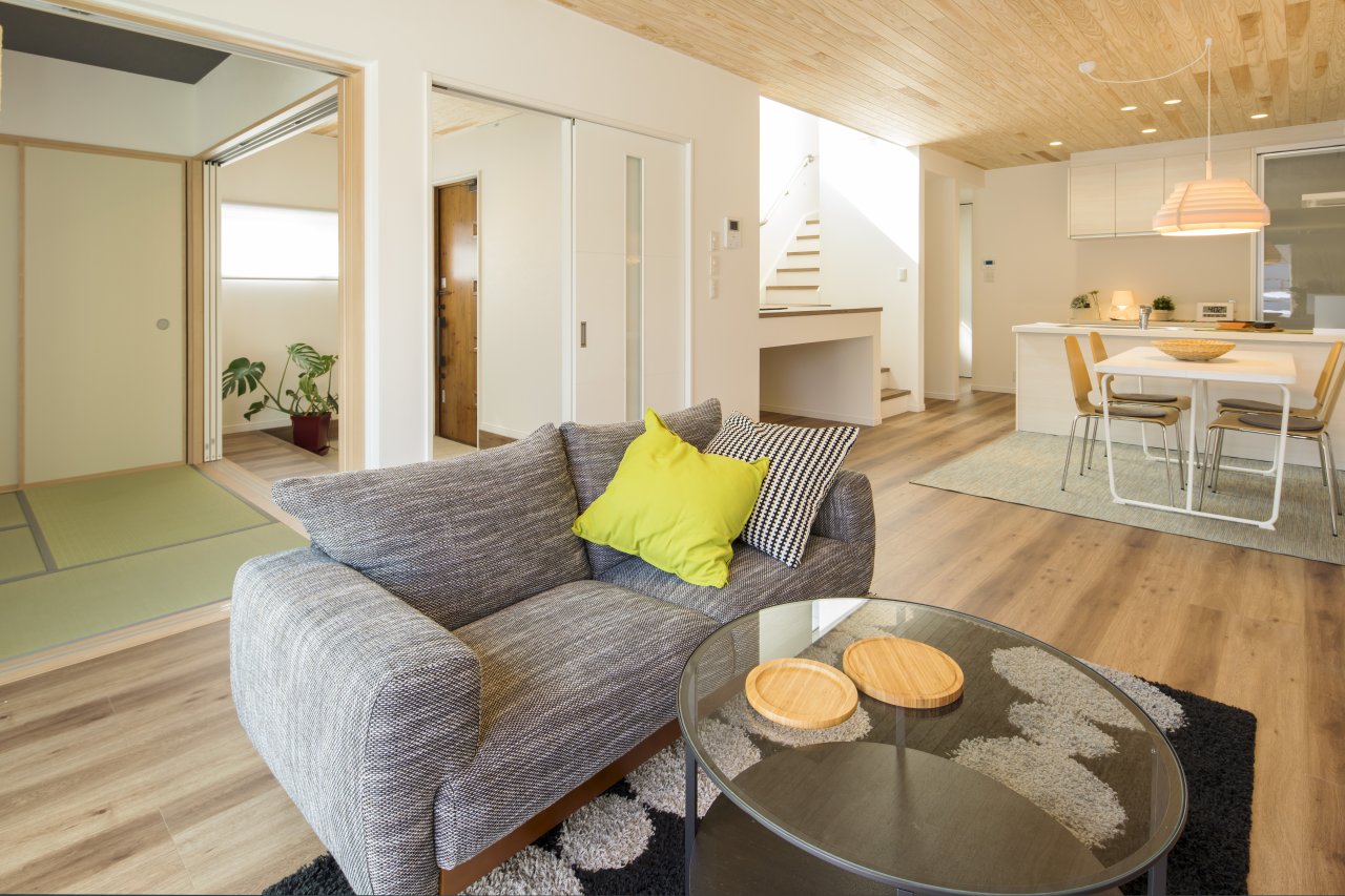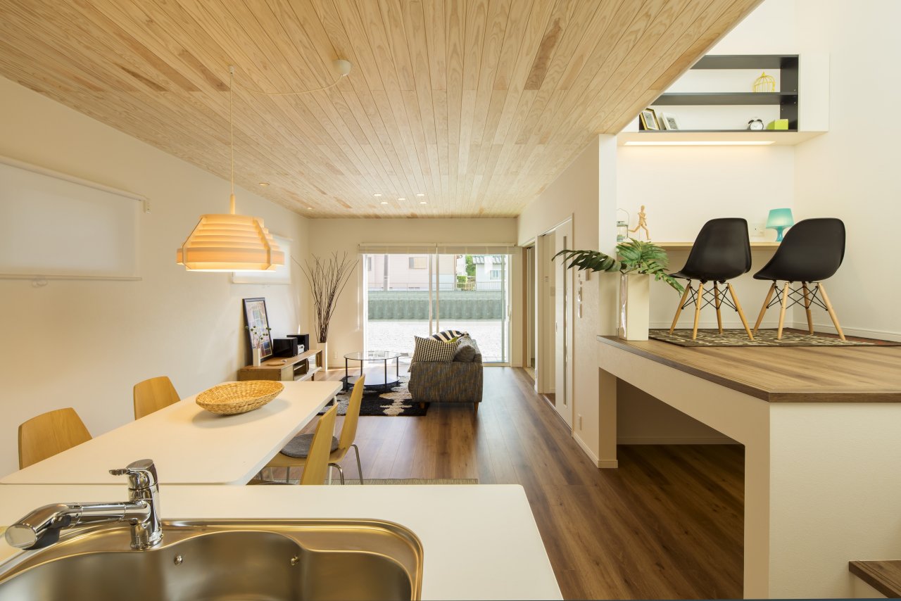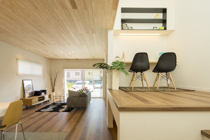 板張り天井も素材の温かみを感じることができるため好調をいただいております。
