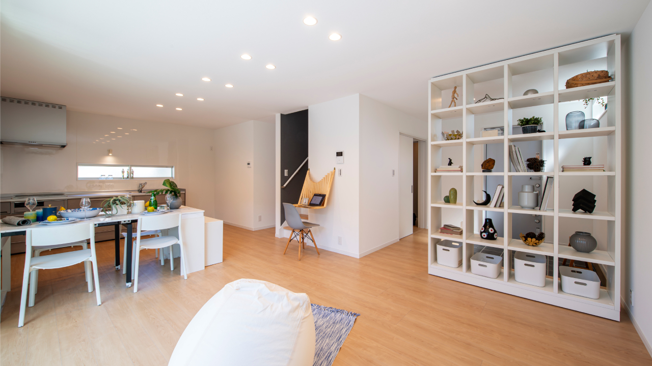 フレキシブルに変化する家『KARU』は、シンプルに、ライフスタイルに合わせて簡単に可動する間仕切り家具が主体。 普段はしまっておけるデスクやベッドなど、シンプルな空間とライフスタイル、ライフステージに合わせた変化が可能な家。 あなたの暮らしに軽やかにフィットしていく住まいが、これからのスタイル