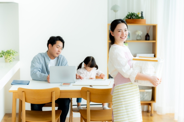 子育て世帯では、家族が自然と集まれるリビング空間が重要です。リビングに学習スペースや読書コーナーを設ければ、子どもが宿題をしている間に親は家事をしたり一緒に読書をしたりと、コミュニケーションの時間が増えます。